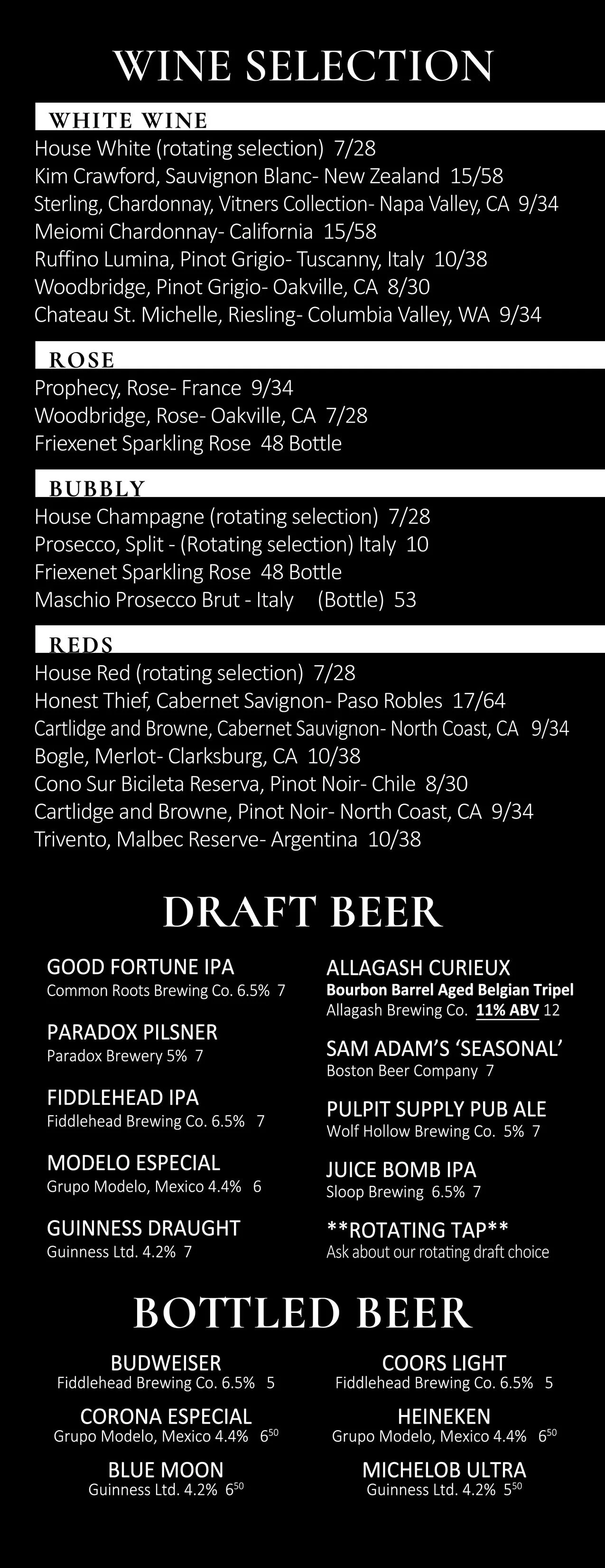 BEER & WINE MENU